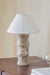 A soft pleated shade meets a carved stone base in the Halo Small Table Lamp. This charming piece brings texture, warmth, and timeless form to layered bedside styling.