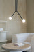 Minimalist and striking, the Niora Hanging Lamp features twin arms and soft white globe diffusers. Its linear balance and matte black finish make it a bold, architectural lighting piece for modern living spaces.