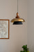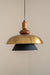 The Perisi Fairy Pendant Lamp starts with a stack of two playfully rounded wood objects followed by a round metal pendant in gold and a conical textured metal pendant in black giving it it's fairy like character.?Comes with a black wire?and a?black canopy.