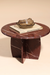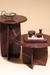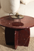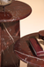 The surface of the table features unique and intricate texture in a deep red hue. No two pieces are alike!