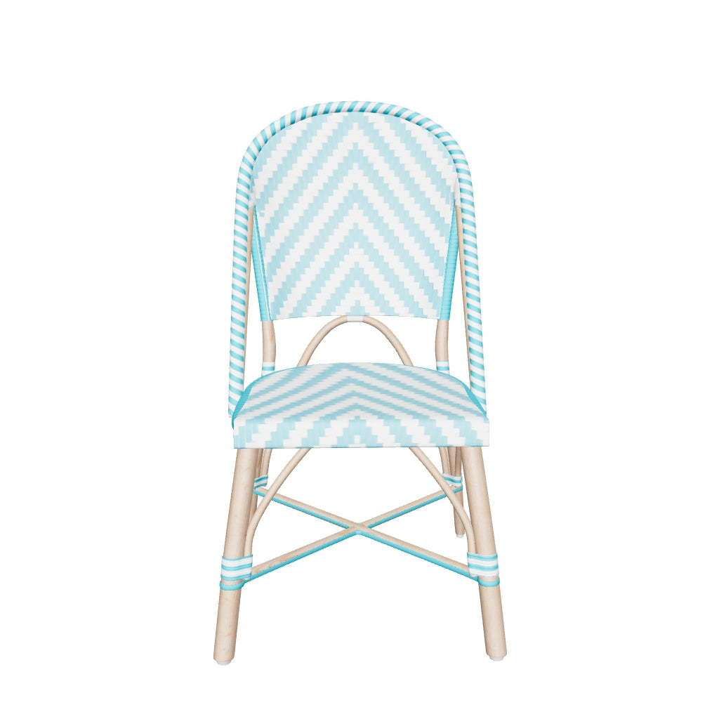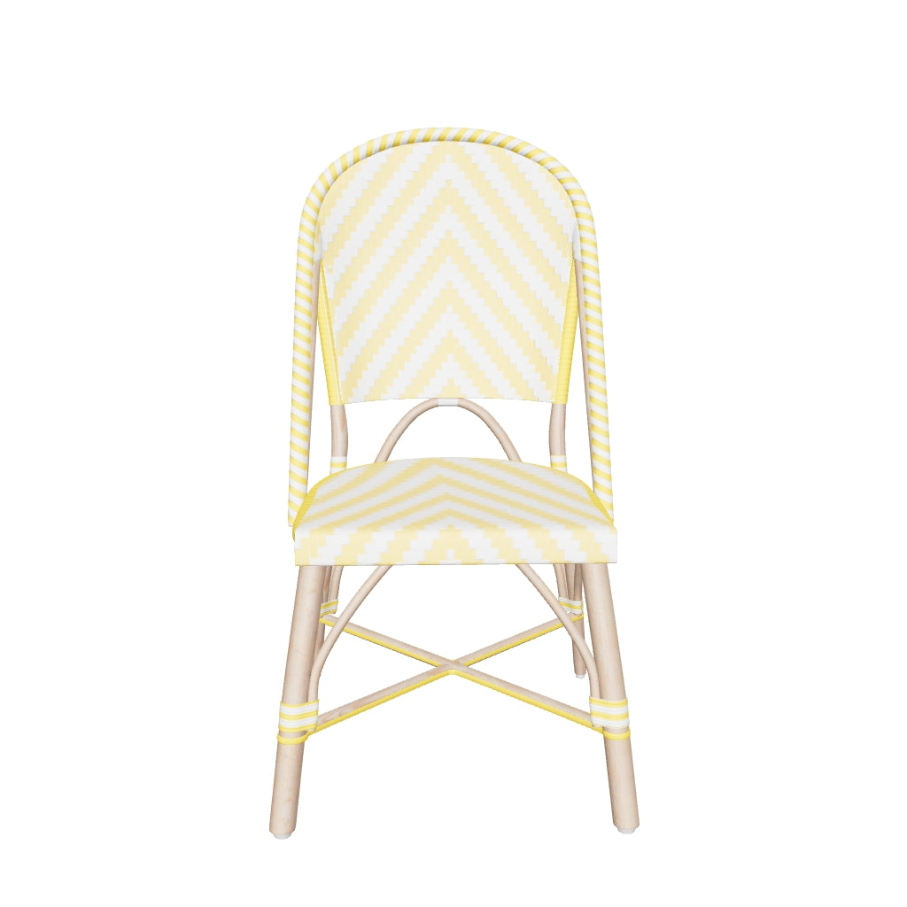 These classic French style bistro chairs are made with an intricate resin wicker weave that add that extra fun element to outdoor seating. The light weight cane is designed to be versatile so moving them around and arranging them is convenient and quick.