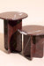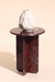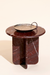 The surface of the table features unique and intricate texture in a deep red hue. No two pieces are alike!