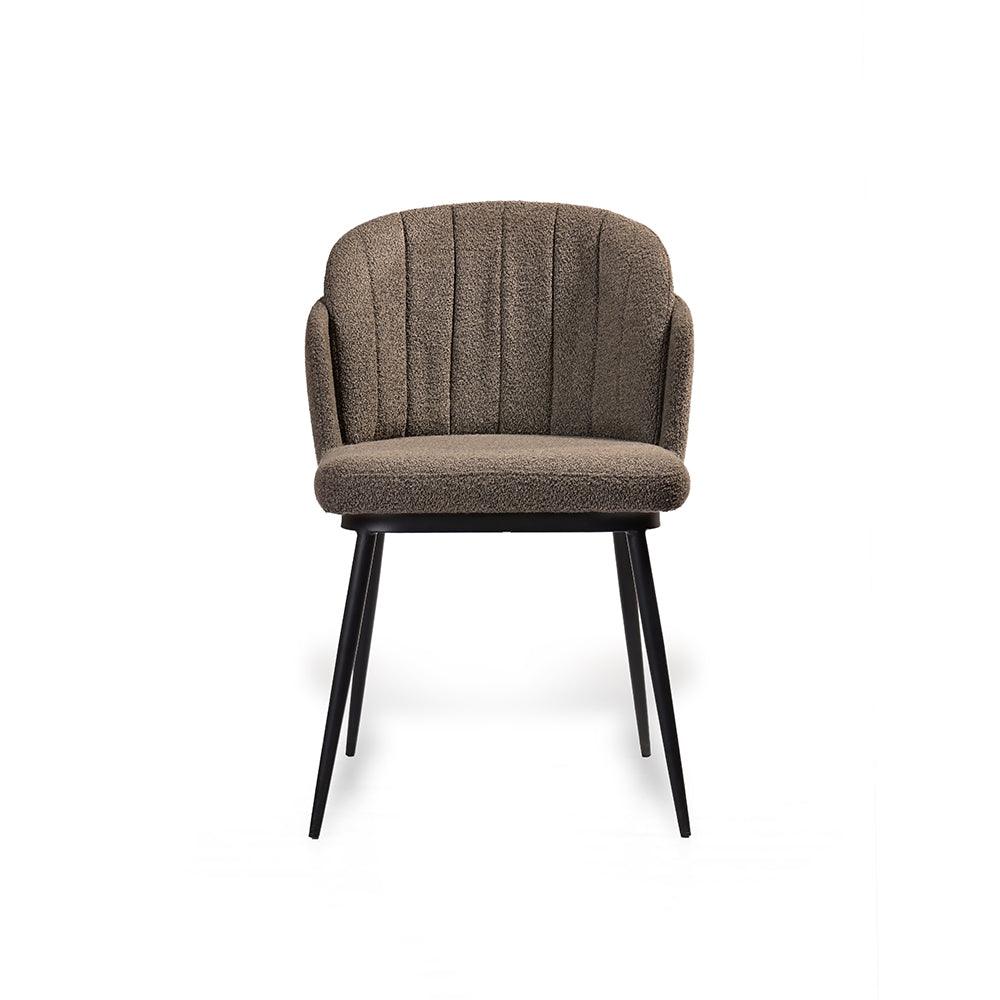embodiment of the Swedish concept of "just right." This elegant chair strikes an ideal balance between form and function, featuring a gently curved backrest with sleek channel tufting that offers both visual appeal and ergonomic support. Upholstered in a rich, textured fabric in a versatile earthy hue, the Lagom chair adds warmth and sophistication to any dining space. Its sturdy black metal legs provide a contemporary contrast, ensuring stability and durability while maintaining a lightweight appearance.